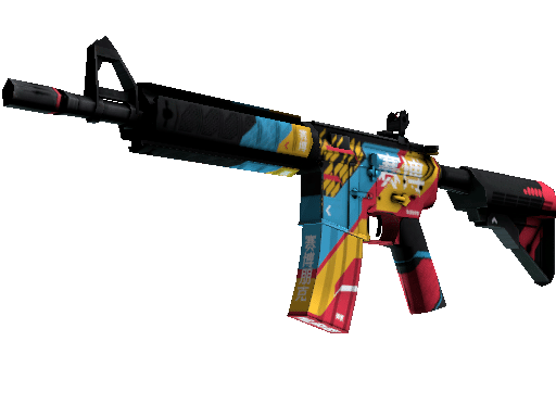 More accurate but less damaging than its AK-47 counterpart, the M4A4 is the full-auto assault rifle of choice for CTs. Diagonal bands of blue, red, and gold have been custom painted over this M4’s black base.