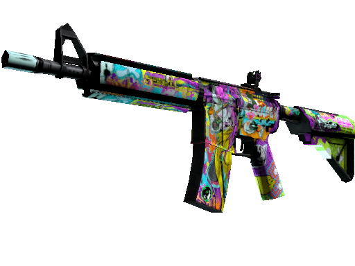 More accurate but less damaging than its AK-47 counterpart, the M4A4 is the full-auto assault rifle of choice for CTs. It has been custom painted using neon colors and covered with hand-drawn designs.