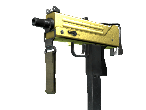 Essentially a box that bullets come out of, the MAC-10 SMG boasts a high rate of fire, with poor spread accuracy and high recoil as trade-offs. Its gold finish shimmers in the light, highlighting every beautiful imperfection on the weapon.