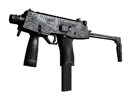 Manufactured in Switzerland, the cutting-edge MP9 SMG is an ergonomic polymer weapon favored by private security firms. It has been painted with metallic paints to look as though it has been inlaid with metals in a medieval motif.