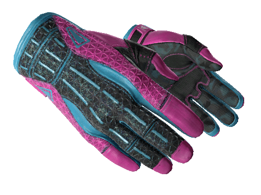 Synthetic fabrics make these athletic gloves durable and eye-catching. These synthetic gloves are crafted from a striking mix pink and blue technical fabrics.